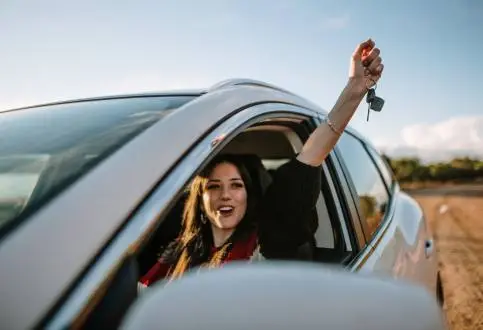 נהגת צעירה מציגה מפתחות לרכב